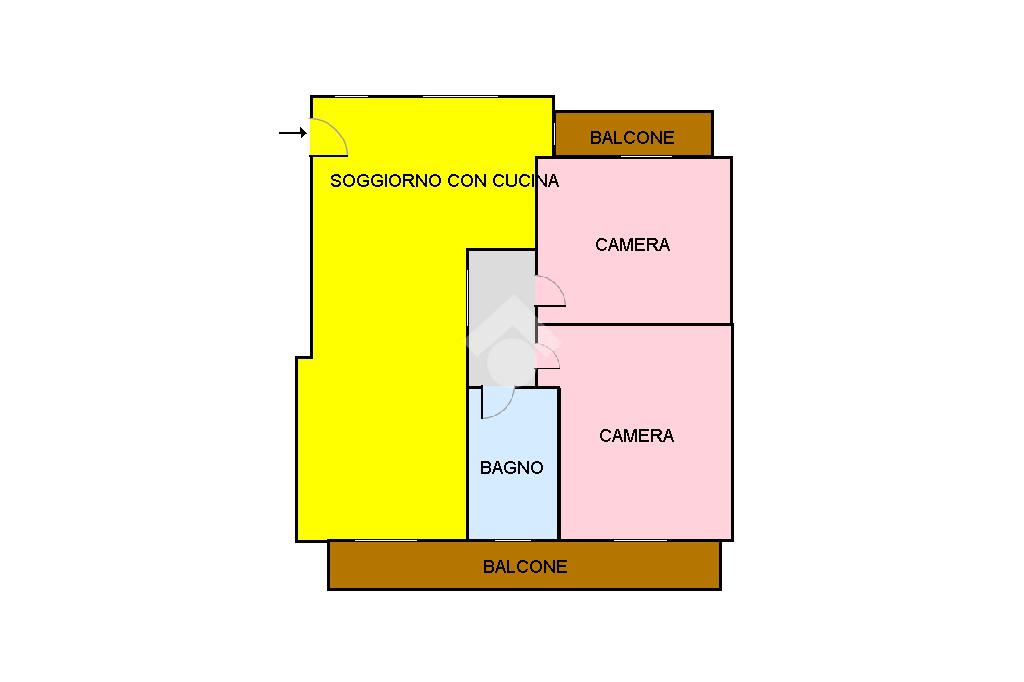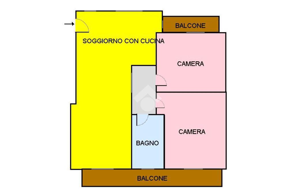 Situato al secondo piano, l'immobile è suddiviso in ingresso - soggiorno con cucina a vista e camino, 2 comode camere da letto, bagno e 2 balconi.