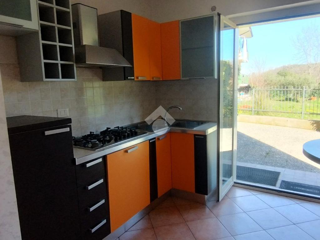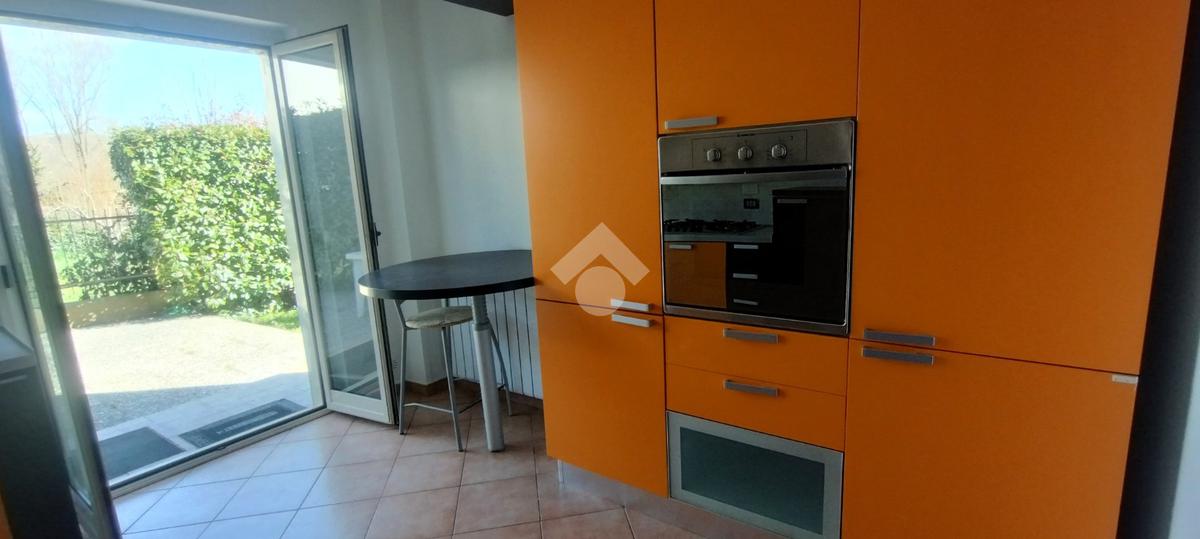 Al piano terra, si trova un soggiorno, la cucina e un bagno. Sia il soggiorno che la cucina si affacciano direttamente sul giardino privato, ideale per momenti di relax e di convivialità all'aperto.